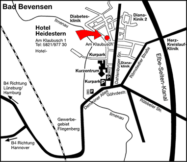 Bad Bevensen in der Lüneburger Heide liegt nur etwa 45 Auto- oder Bahnminuten von Hamburg entfernt. Das "Hotel Heidestern" ist unmittelbar im Kurzentrum gelegen. In wenigen Gehminuten erreichen Sie von hier aus die schönen Sehenswürdigkeiten unseres Ortes.